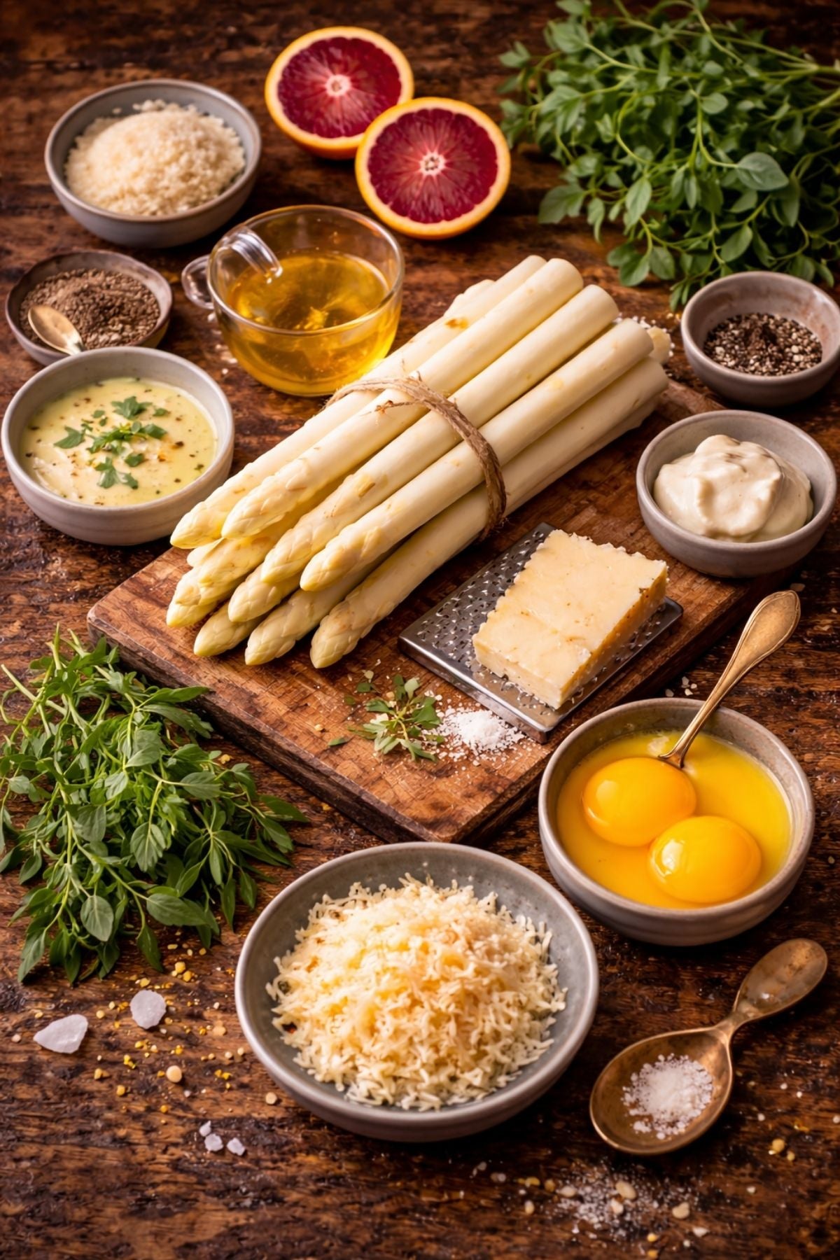 Manchego-Creme: Der bewusste Gegenpol – diese Creme ist kein Extra, sie gibt Tiefe. Koche die Sahne auf und reduziere sie um die Hälfte. Gib 50 ml Spargelsud dazu und lasse alles kurz ziehen. Püriere die Mischung mit dem fein geriebenen Manchego glatt. Die Konsistenz sollte weich sein: löffelbar, nicht schwer