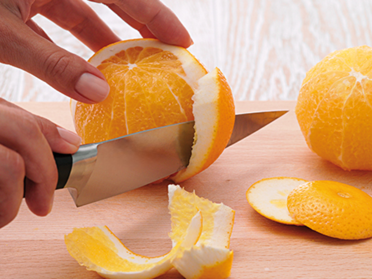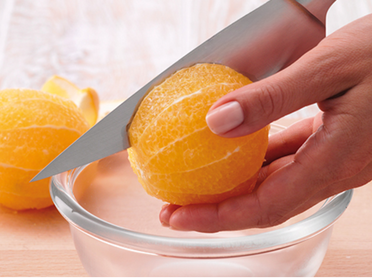 Zum Herstellen feiner Orangenfilets eignet sich – der Name sagt es schon – am besten ein Filiermesser. Seine flexible Klinge passt sich der Rundung der Orange an und ermöglicht ein exaktes Arbeiten beim Filetieren, so dass möglichst wenig Fruchtfleisch verloren geht.