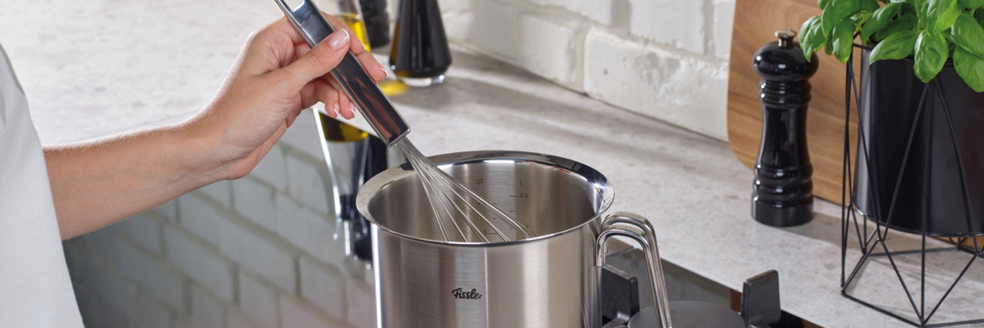 Fissler Milchtöpfe bestehen aus bis zu 90 % recyceltem Edelstahl 18/10 und wurden – wie alle Töpfe und Pfannen aus der erfolgreichen Original-Profi Collection® Kochgeschirr-Serie – speziell für die Bedürfnisse anspruchsvoller Köche entwickelt.