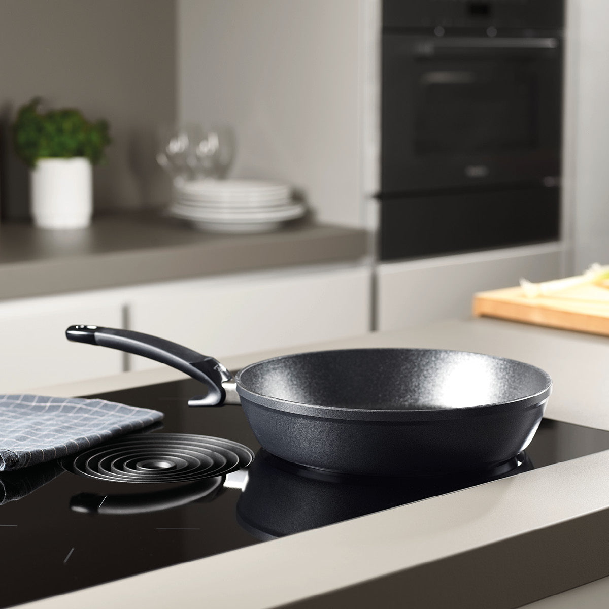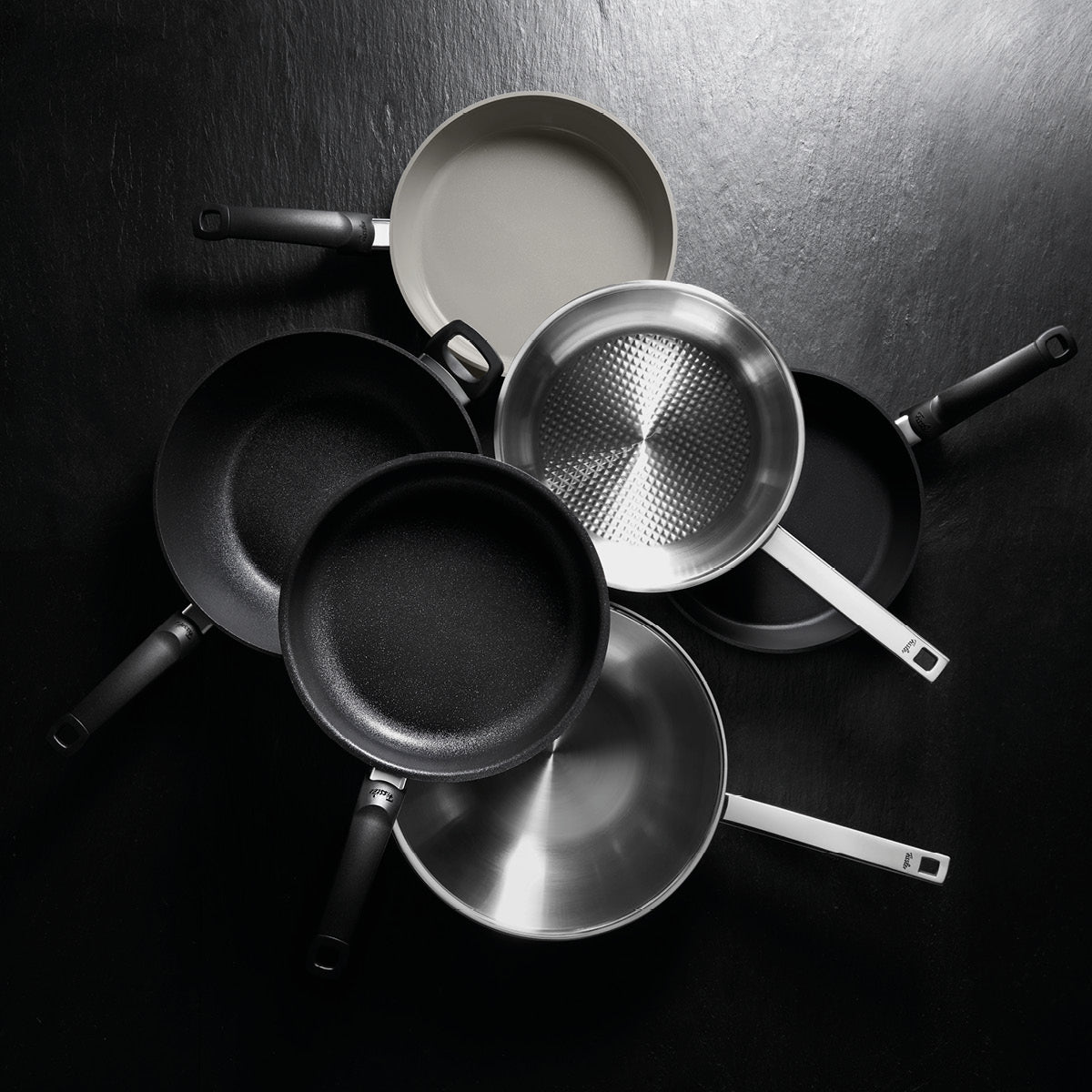 Fissler Bratpfannen in der 20 cm Größe sind die optimale Ergänzung für deine Pfannen mit einem Durchmesser von 24, 26 und 28 cm sowie die ideale Wahl für Alleinstehende. Die hochwertige Antihaftbeschichtung sorgt dafür, dass leicht anhaftende Speisen nicht am Boden kleben bleiben und du – bei richtiger Verwendung – ein optimales Bratergebnis erzielst.