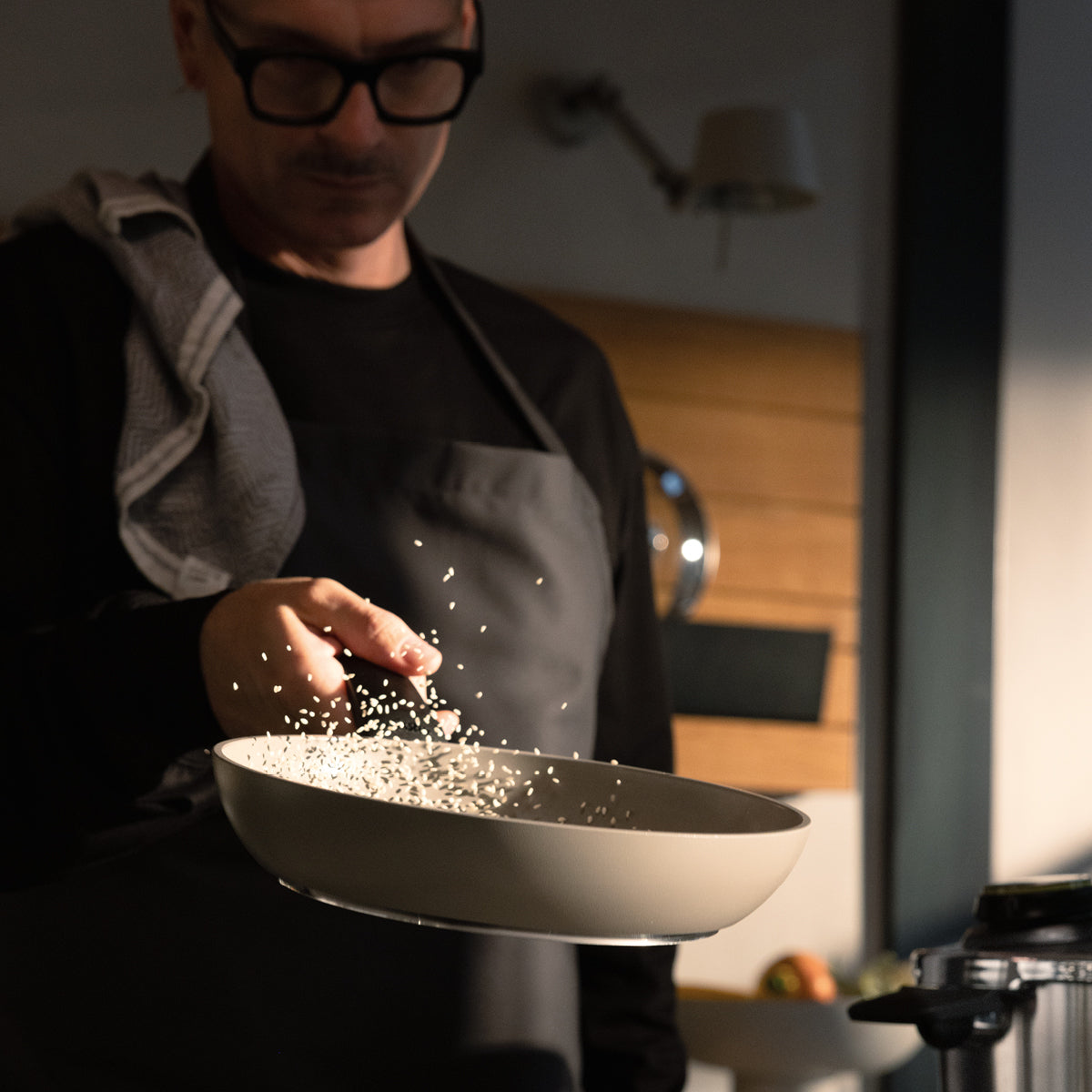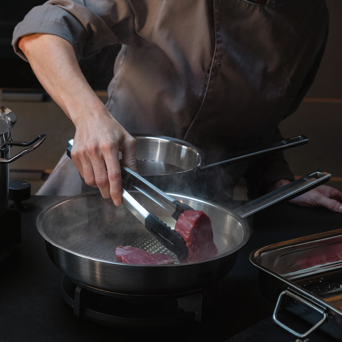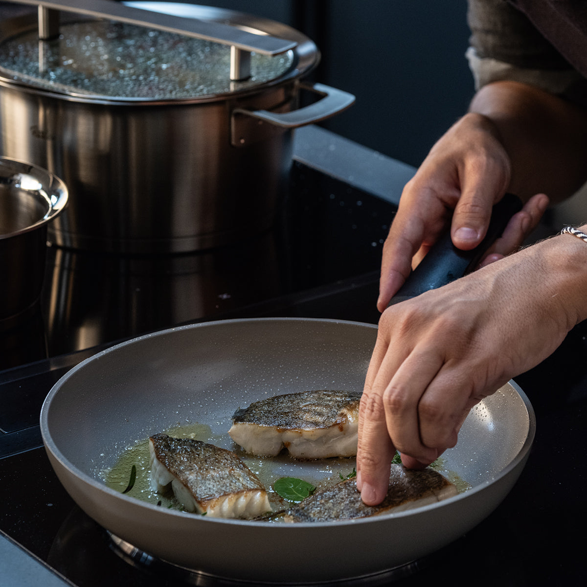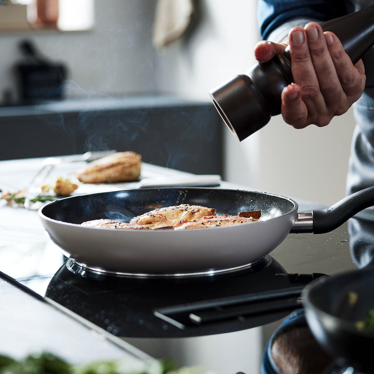 Der Platz in Küchen ist oft begrenzt. Gerade größere Töpfe oder Pfannen nehmen einiges an Platz in Anspruch. Besitzt du mehrere verschiedene Pfannen oder ein Pfannen-Set aus zwei gleichen Pfannen mit unterschiedlichem Durchmesser, kannst du diese in deinen Schränken platzsparend stapeln.