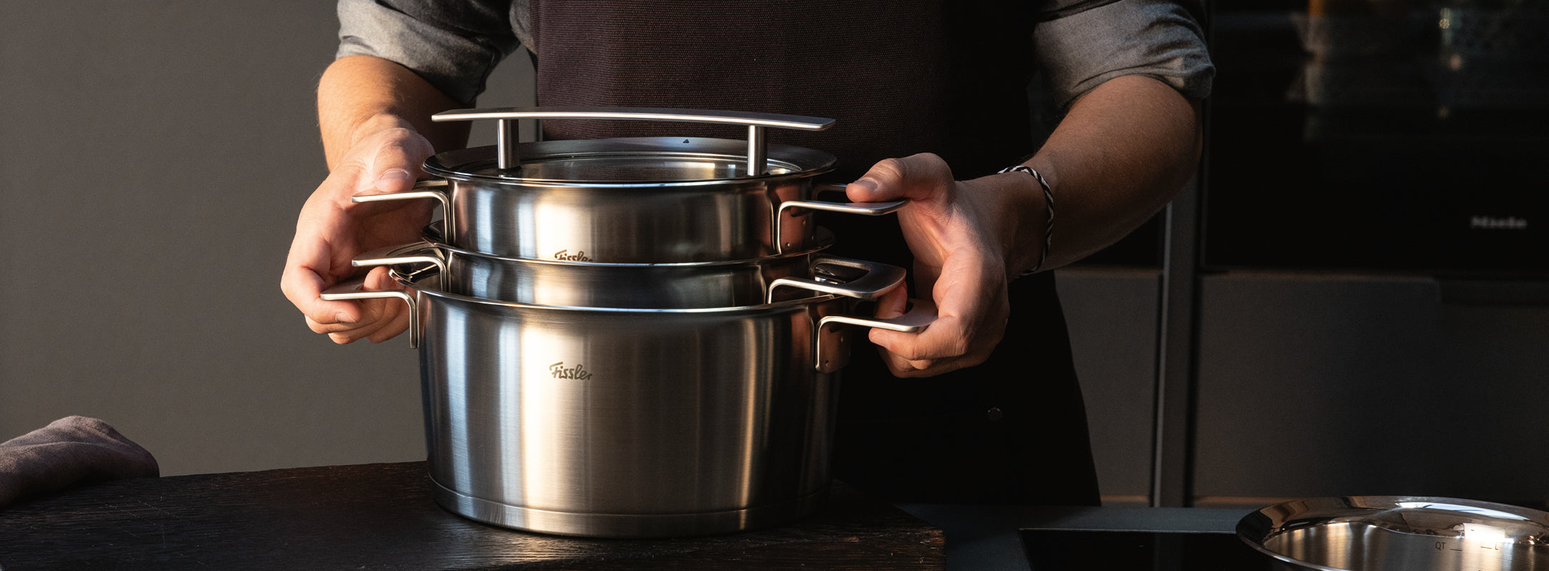 Die Phi Collection® ist Kochgeschirr, das für dich arbeitet. Du beherrschst die Küche, wir kreieren die passenden Werkzeuge für dich. Made in Germany, in perfekten Proportionen gestaltet und in jedem Detail funktional durchdacht: Dampf entweicht dort, wo du ihn haben willst, der Deckel lässt sich am Rand einhängen, beim Ausgießen bleibt die Arbeitsfläche sauber und alle Töpfe können gestapelt verstaut werden. Unser CookStar®-Boden sorgt für gleichmäßige Hitze auf allen Herdarten – inklusive Induktion. Einfach. Zuverlässig. Zweifellos schön. Mit 15 Jahren Garantie. Du willst Design, das gut aussieht. Du bekommst Design, das außerdem hervorragend funktioniert.
