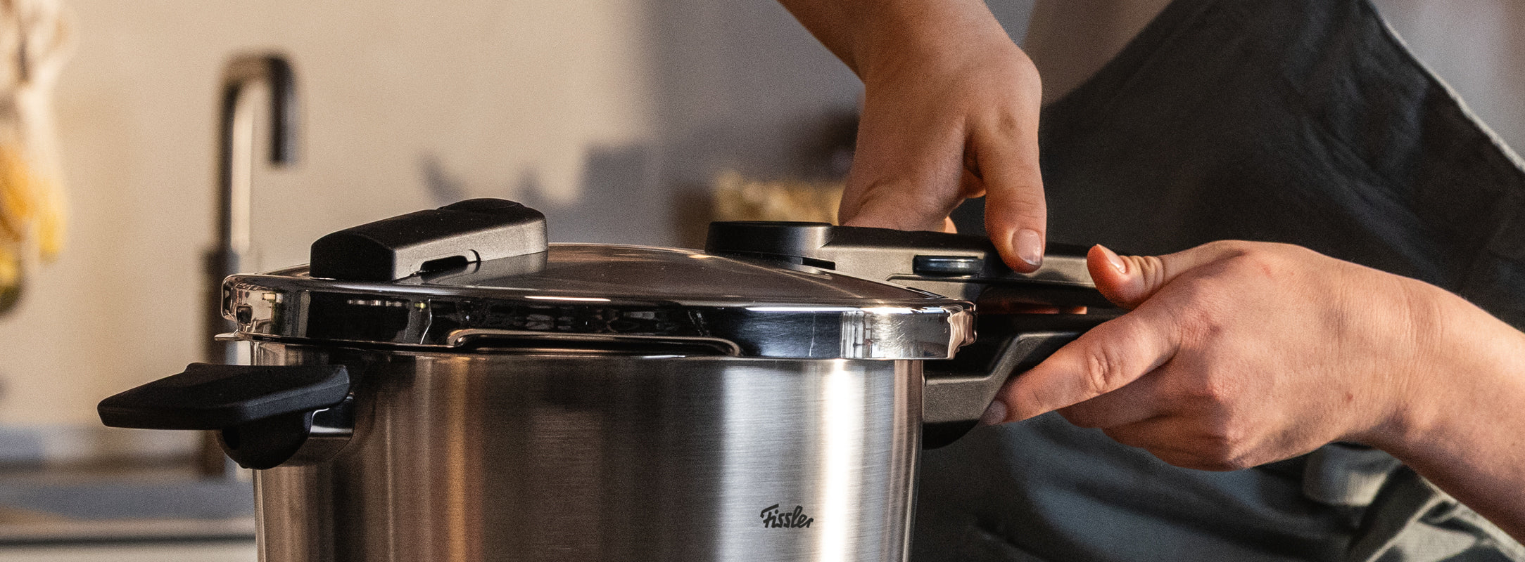 Fissler bietet hochwertige Dampfkochtopf-Deckel, die passgenau sitzen und fest schließen.
