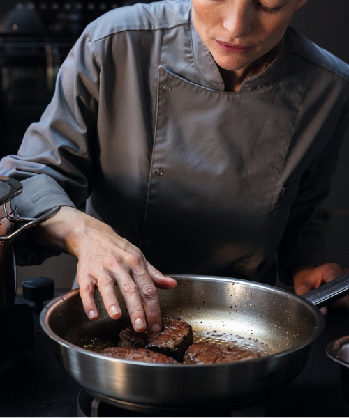 Dein Kochgeschirr liegt vertraut in deiner Hand – es unterstützt dich, gibt dir Sicherheit, während du alles zu einem Ganzen formst.