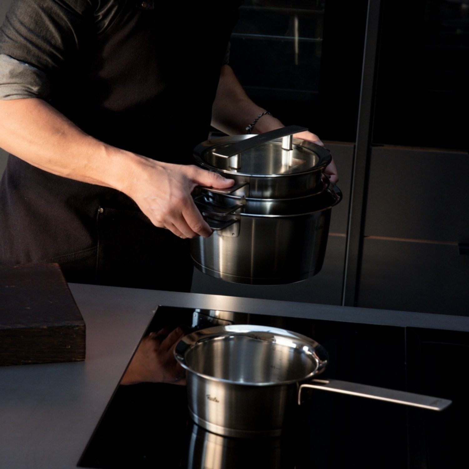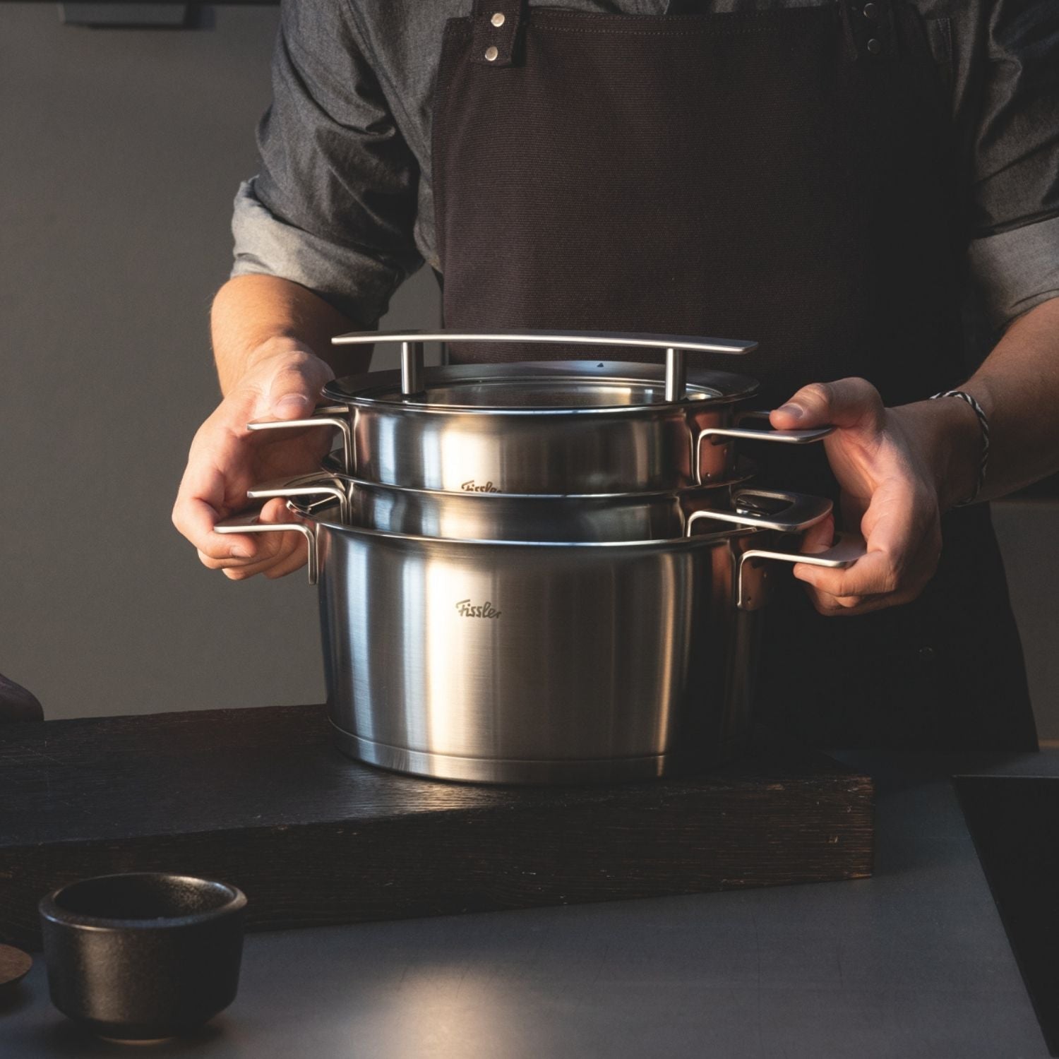 Du nimmst dir Zeit für das, was dich begleitet hat. Messer, Pfannen, Töpfe – sie liegen ruhig in deinen Händen. Du reinigst Edelstahl sorgfältig, schützt Beschichtungen, behandelst jedes Werkzeug mit Respekt.