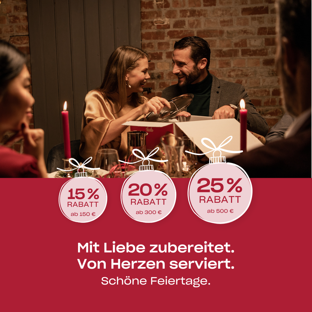 Bereite deine Küche perfekt auf die Feiertage vor, beschenke deine Liebsten oder gönne dir ein hochwertiges Küchenupgrade zu Weihnachten. Entdecke jetzt unsere exklusiven Weihnachtsangebote und sichere dir je nach Bestellwert bis zu 25 % Rabatt*.