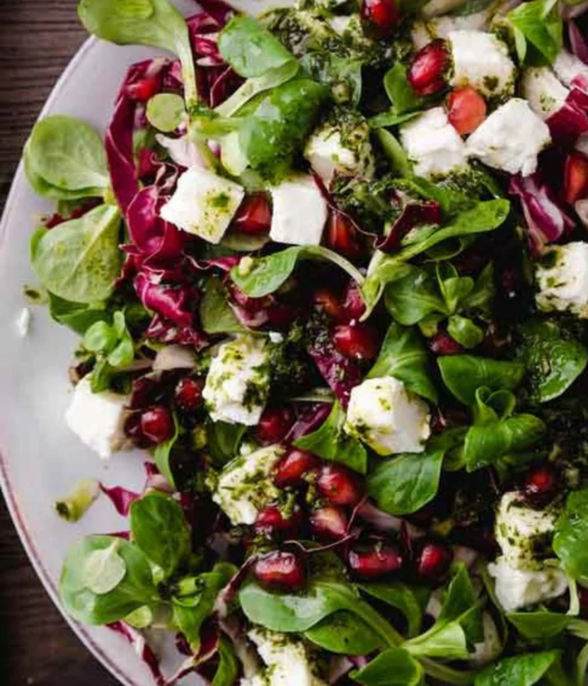 Dieses Menü startet mit einem knackigen Wintersalat, der saisonale Zutaten perfekt in Szene setzt. Als Hauptgang warten vegane Köttbullar und ofengeröstete Hasselback-Kartoffeln auf dich. Ein fruchtiger Apfel-Cranberry-Crumble sorgt für einen süßen Abschluss. Perfekt für alle, die auf Fleisch oder Fisch verzichten möchten.