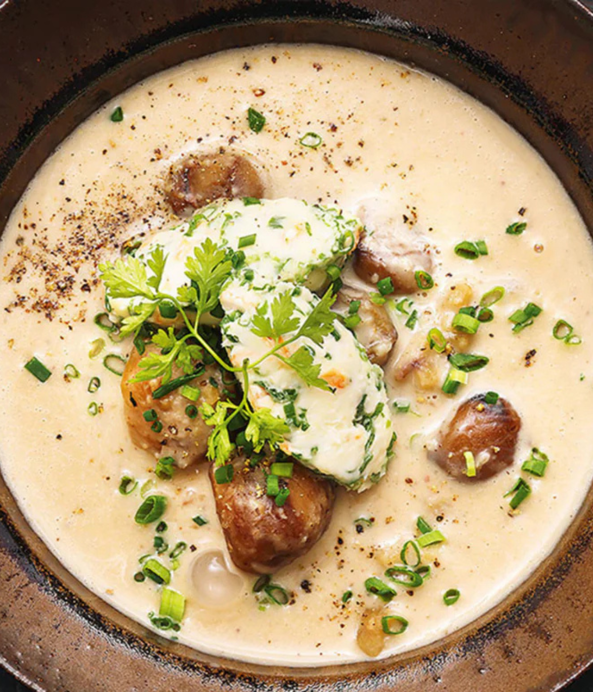 Dieses Menü setzt auf die traditionelle Weihnachtsküche: Ein winterlicher Feldsalat im Parmesankörbchen macht den Auftakt. Danach folgen ein saftiges Weihnachtsgulasch und klassische Semmelknödel, bevor Dampfnudeln mit Vanillesauce den Abend süß ausklingen lassen.