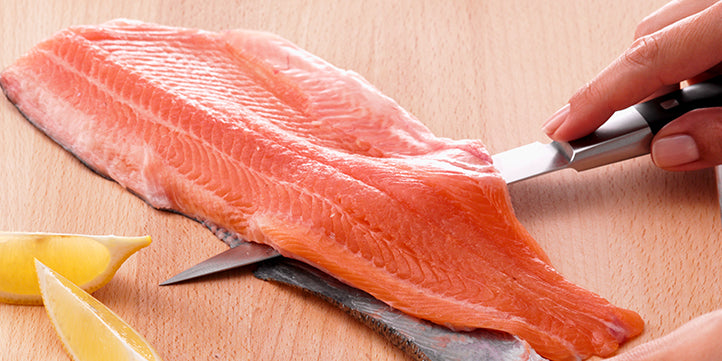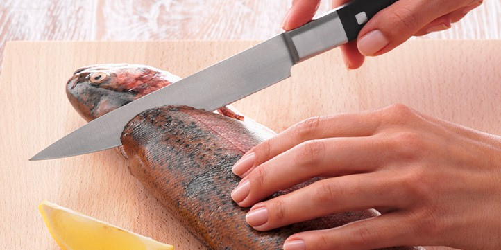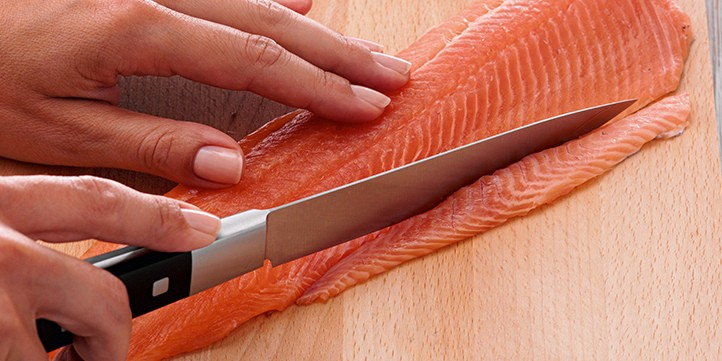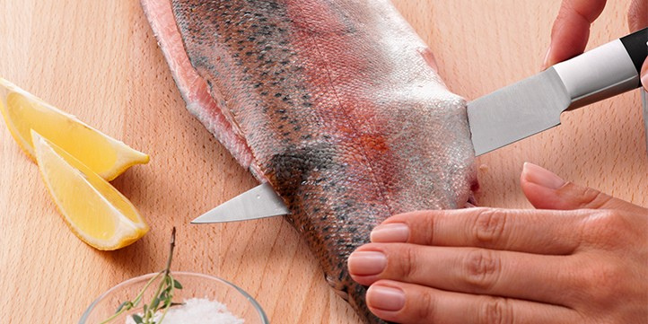 Fisch filetieren ist mit dem richtigen Küchenwerkzeug nicht schwierig. Wer seine Lachsforelle lieber selbst filetieren will, anstatt das dem Fischhändler zu überlassen, braucht dazu vor allem das passende Messer – ein Filiermesser, mit dessen elastischer Klinge sich eng an Haut und Gräte entlang arbeiten lässt.