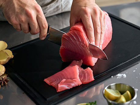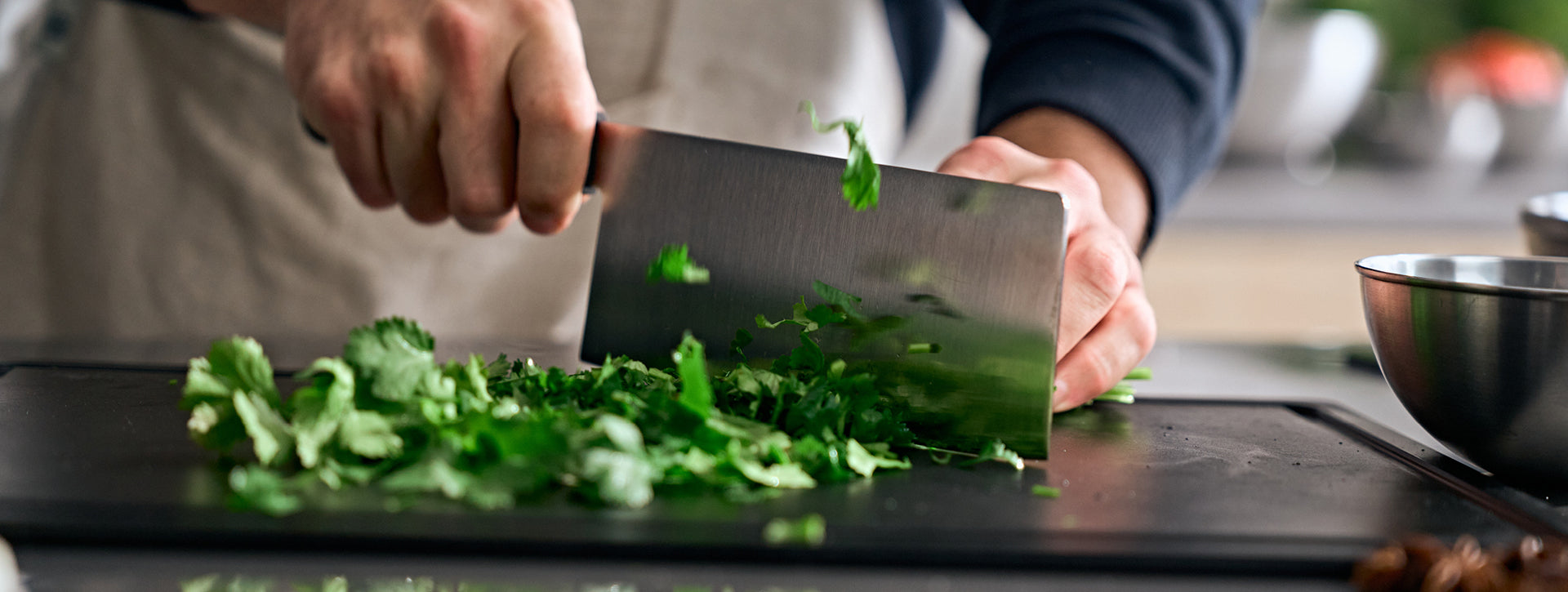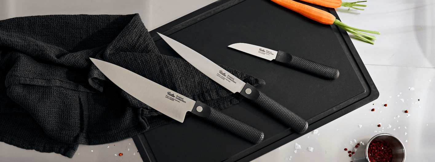 Gleichzeitig legen wir größten Wert auf Komfort beim Schneiden: Die Daumenmulde und die Griffstruktur der Fissler ProCut Collection sorgen für die richtige Handhaltung und einen besonders guten Halt, während das geringe Eigengewicht ein ermüdungsfreies Arbeiten ermöglicht. Damit ist die Fissler ProCut Collection ideal für Kochbegeisterte, die sich bei der Zubereitung ihrer Speisen eine ausgewogene Kombination aus besonders lang anhaltender Schärfe und müheloser Handhabung wünschen.