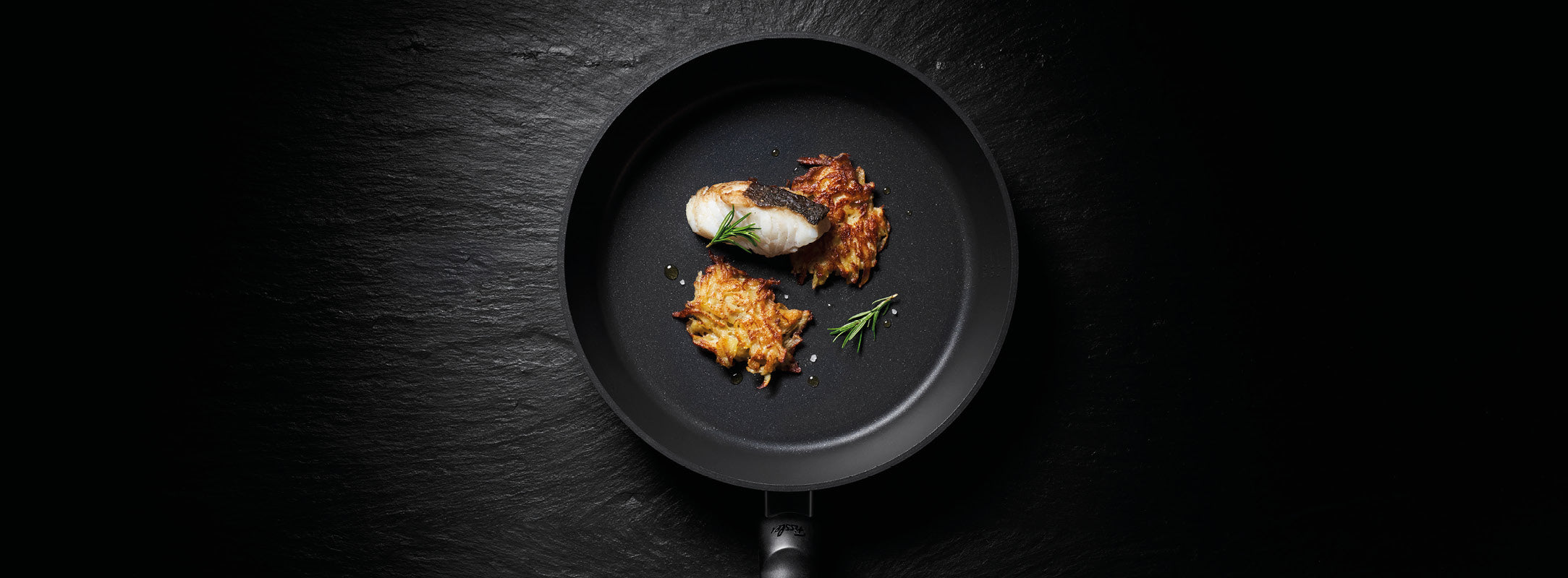 Die Fissler Levital®+ Pfanne bietet einen besonders langanhaltenden Antihaft-Effekt und ist daher ideal zum Braten aller Gerichte, auch mit empfindlichen Zutaten, die leicht anhaften können. Empfohlen von Alexander Herrmann.