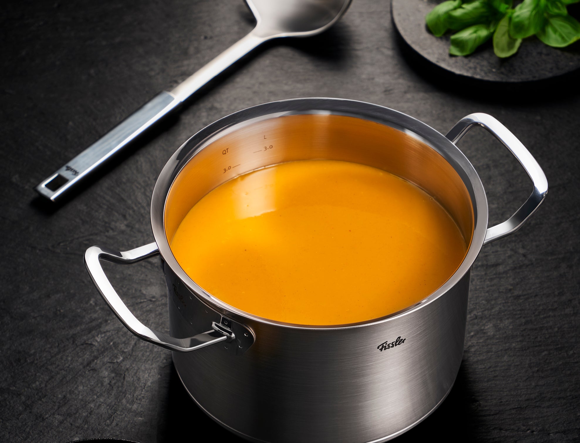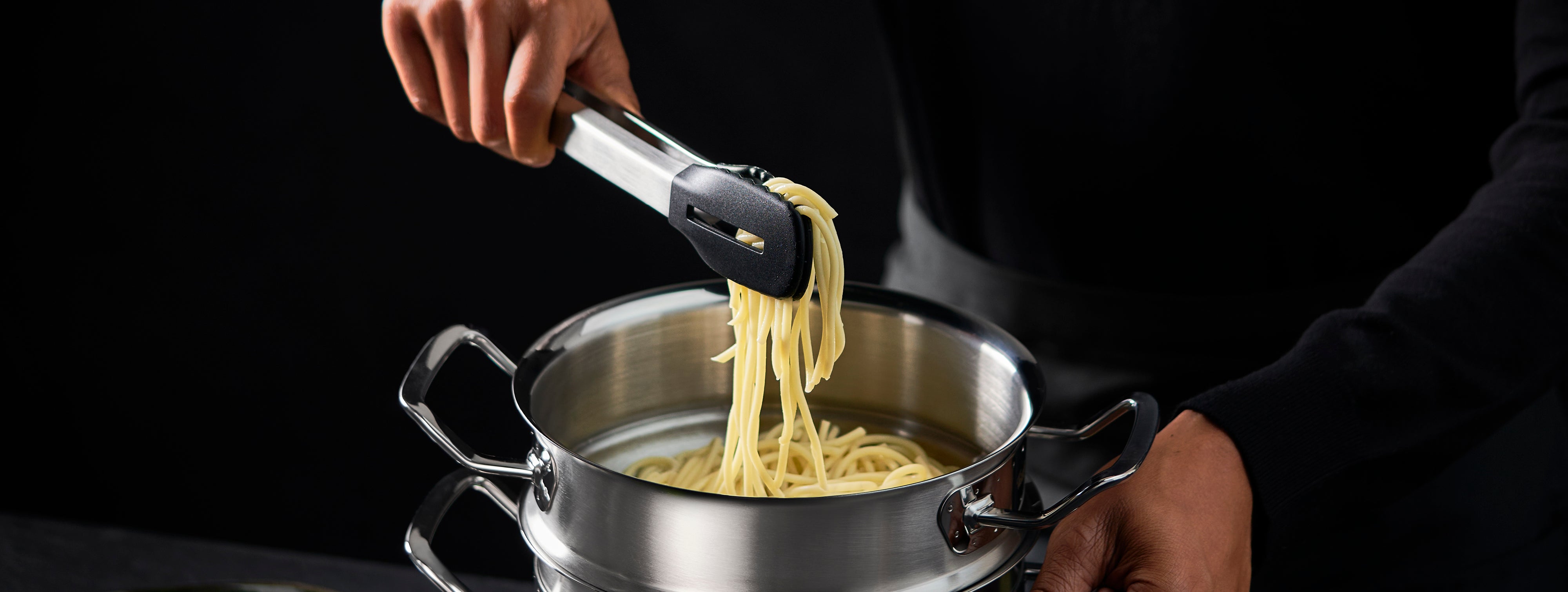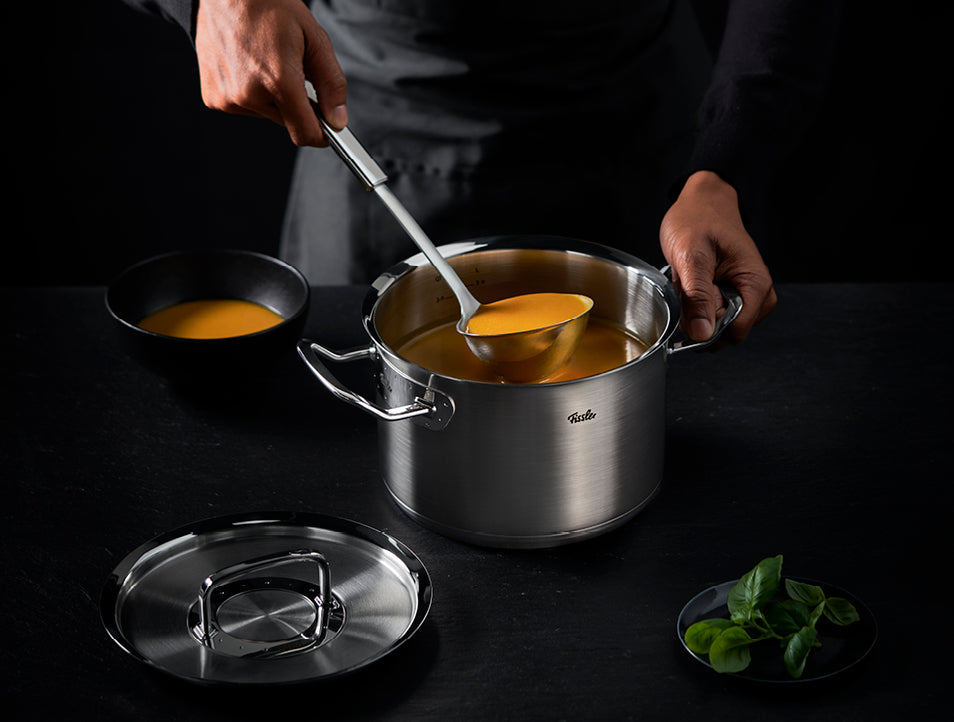 Die Original-Profi Collection® bietet nicht nur ein vielseitiges Sortiment an Töpfen und Pfannen für alle Anwendungen, sondern jetzt auch eine Kollektion essentieller Küchenhelfer, vom Bratwender zum Schaumlöffel, vom Servierlöffel zum Pizzaschneider. Mit ihrem edlen Look aus poliertem Edelstahl 18/10 passen diese praktischen Küchenhelfer perfekt zu dem Kochgeschirr der Original-Profi Collection®.