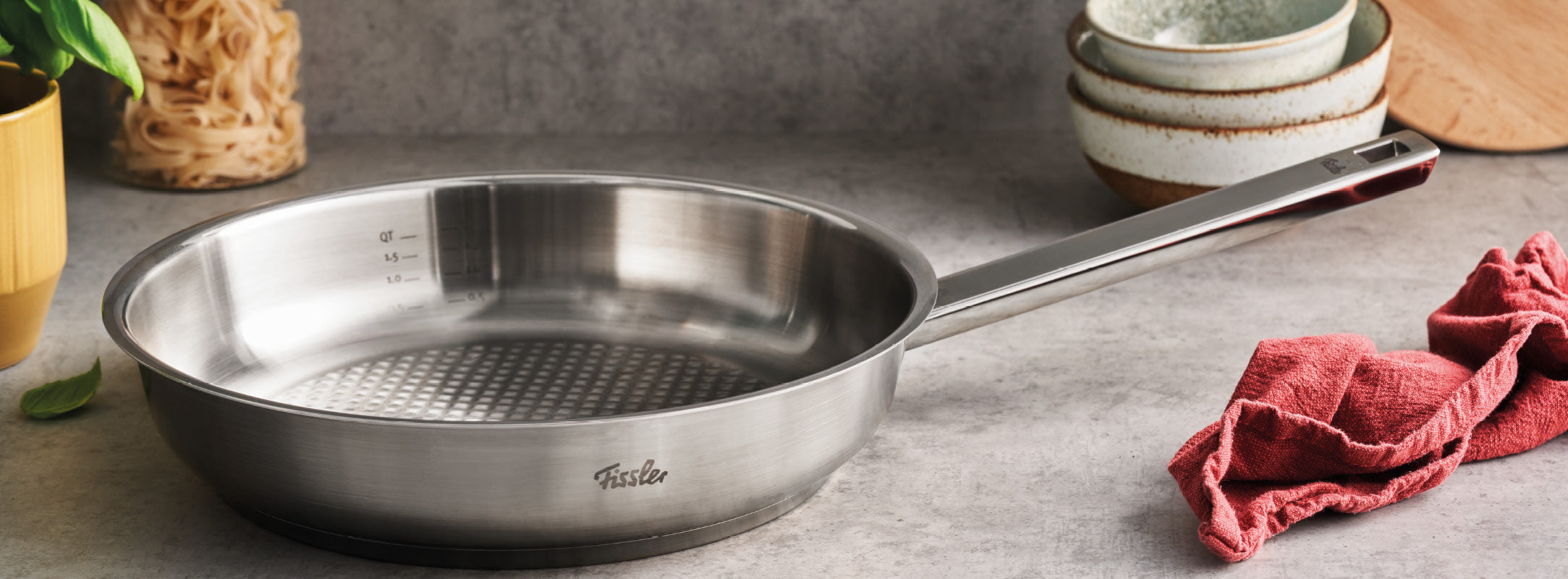Fissler bietet Premium-Pfannen mit einem Durchmesser von 28 cm an, in denen du voluminöse Gerichte komfortabel und sicher zubereiten kannst.