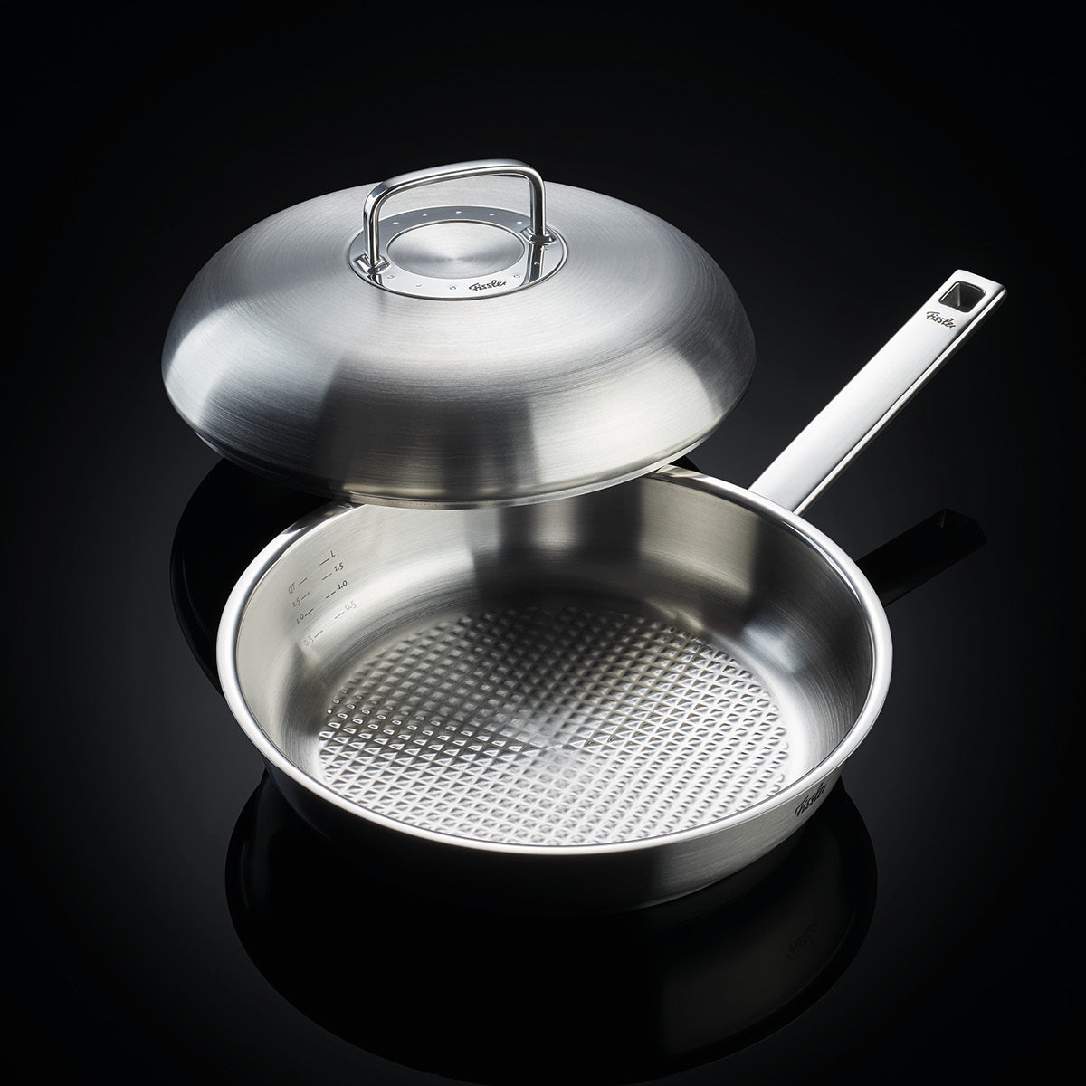 Der Platz in Küchen ist oft begrenzt. Gerade größere Töpfe oder Pfannen nehmen einiges an Platz in Anspruch. Besitzt du mehrere verschiedene Pfannen oder ein Pfannen-Set aus zwei gleichen Pfannen mit unterschiedlichem Durchmesser, kannst du diese in deinen Schränken platzsparend stapeln.