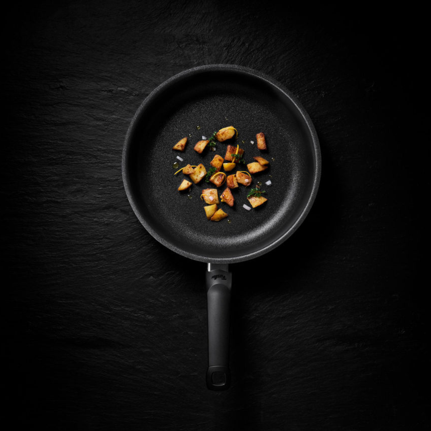 Mit den Küchenutensilien, Messern und Pfannen von Fissler Essential® bist du bestens für das tägliche Kochen ausgestattet, ob beim Hacken von Gemüse, Braten eines saftigen Steaks oder kunstvollen Anrichten.