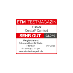 Die Ceratal® Collection von Fissler vereint schonendes und krosses Braten mit langlebigen Antihaft-Eigenschaften. Dank der wasserbasierten Keramikbeschichtung, hergestellt ohne PFAS/PTFE, gelingt jedes Gericht mühelos und ohne Anhaften. Das edle Design bringt Eleganz in jede Küche, während der energieeffiziente CookStar® Boden für die optimale Wärmeverteilung auf allen Herdarten sorgt.