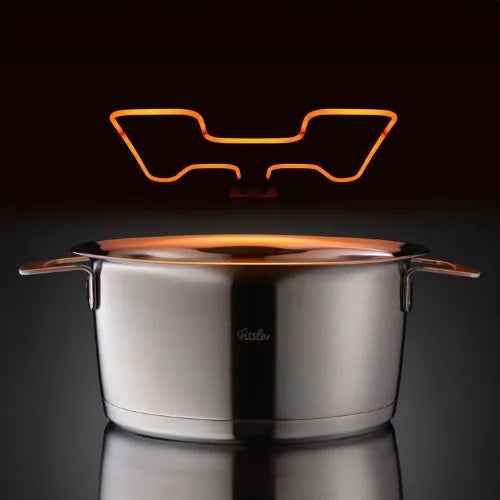 Der exklusive, energieeffiziente Fissler Cookstar® Boden ist für alle Herdarten geeignet, einschließlich Induktion, und sorgt für eine optimale Wärmeverteilung